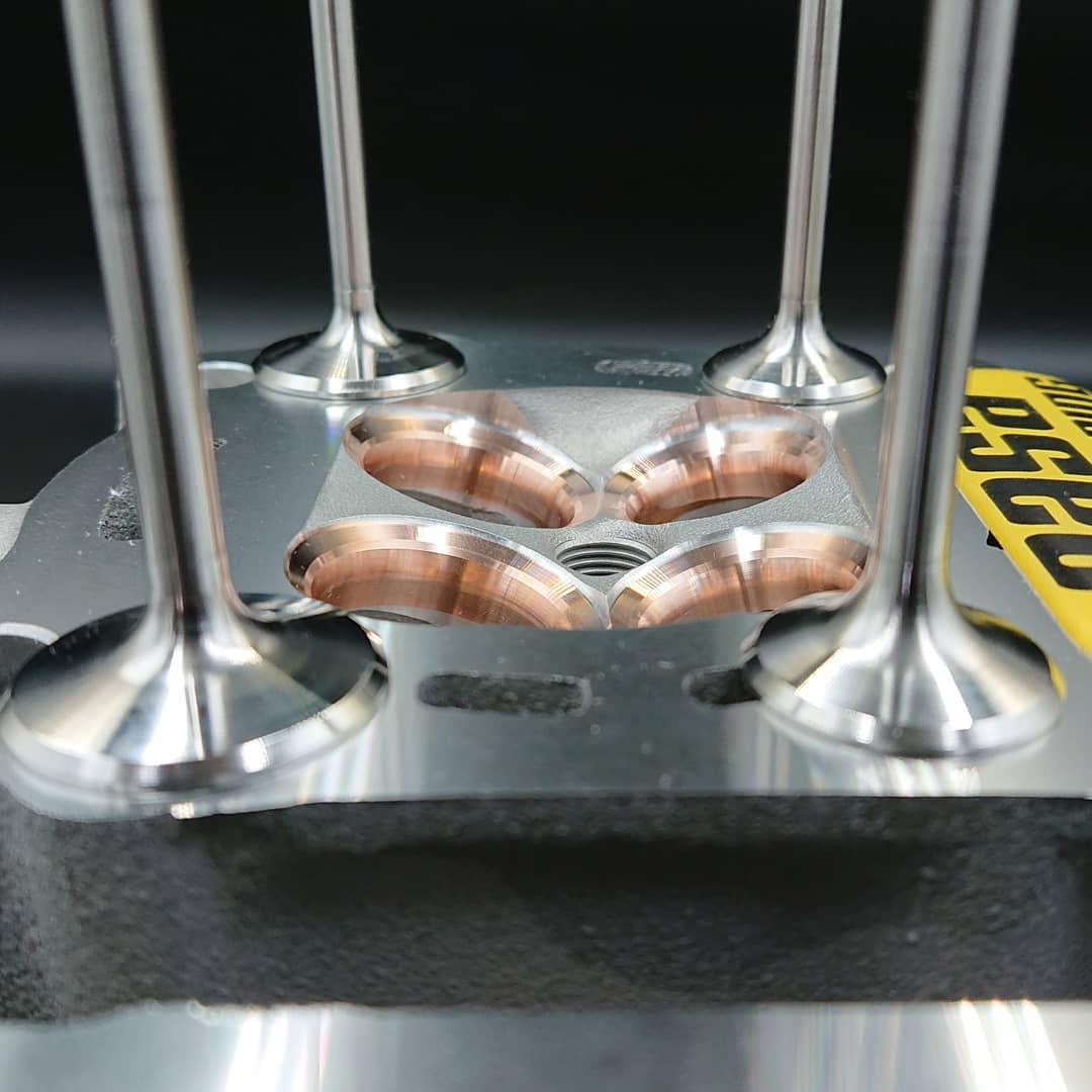 Honda GTR150 cylinderhead full performance modification with high-flow copper seats, copper guides, oversize (+1mm) stainless steel valves and precision CNC Porting for optimal performance!!