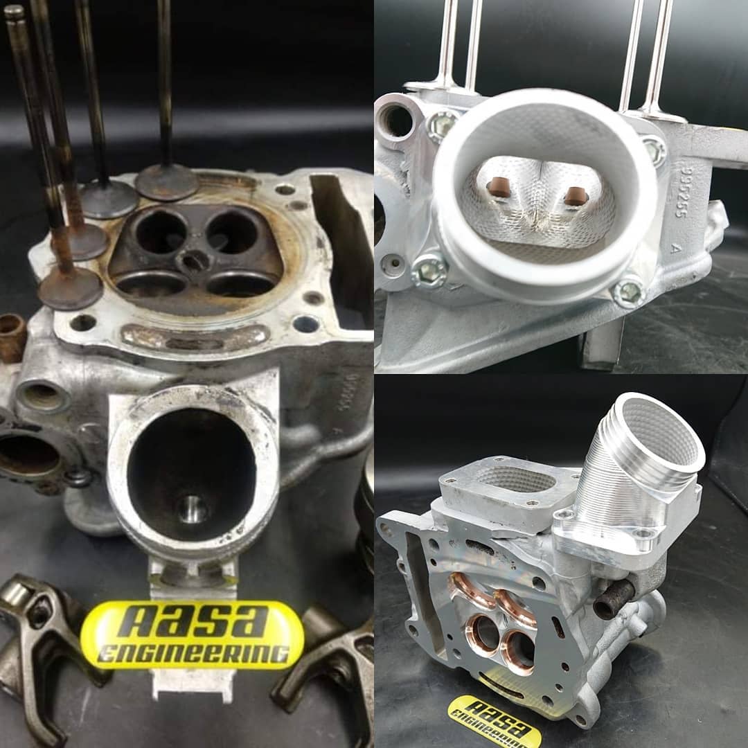 After that, it was all known territory for AaSa, installing oversize copper alloy radius valve seats, stainless steel valves, copper guides and of course all was blended in using out latest 5 axis CNC porting machine to finish up the job!