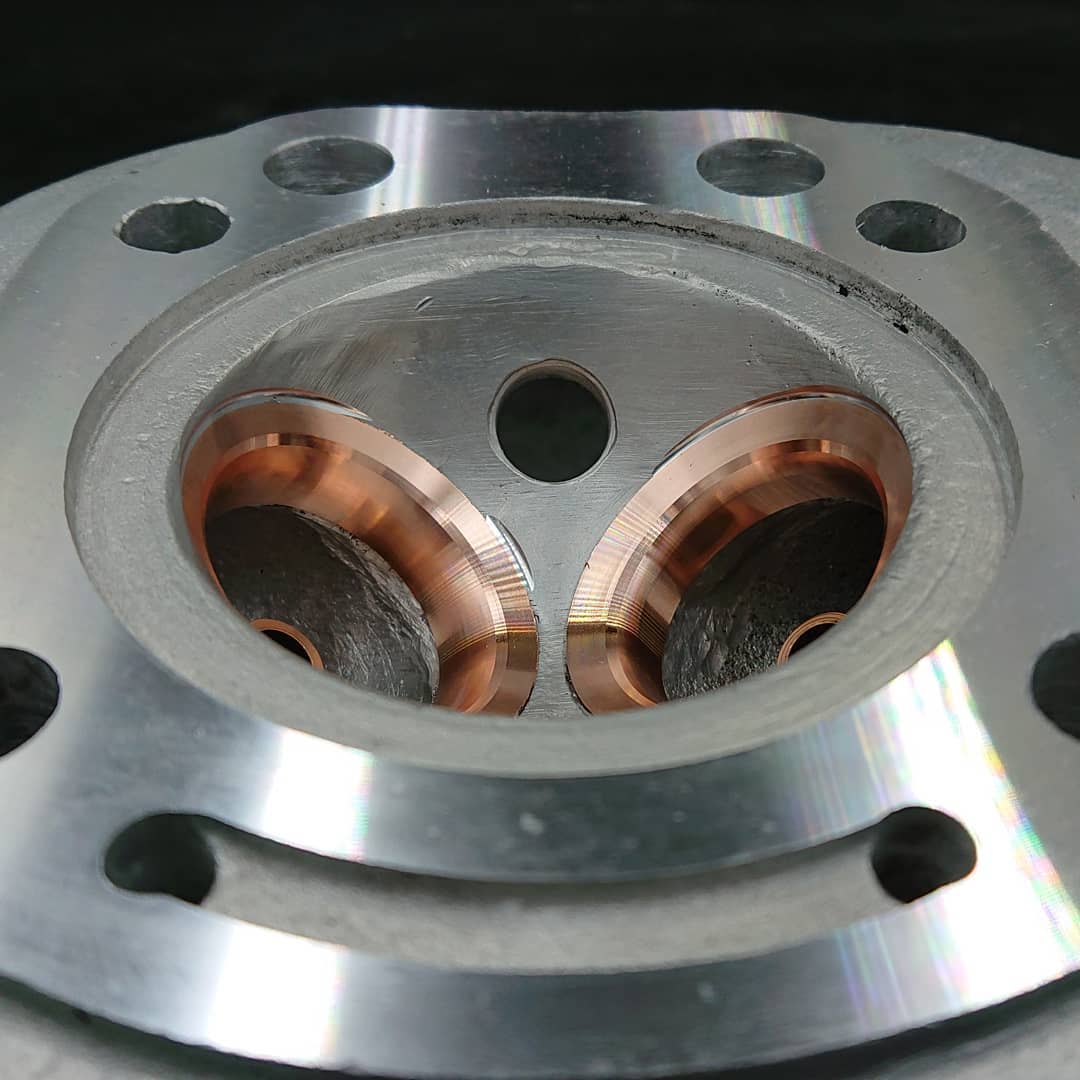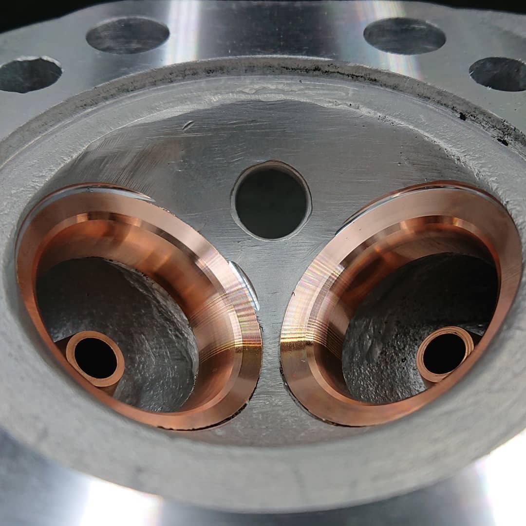BMW R50 cylinderhead full restoration with high-flow copper seats, copper guides, stainless steel valves, vaporblasting, ultrasound cleaning and precision resurfacing!